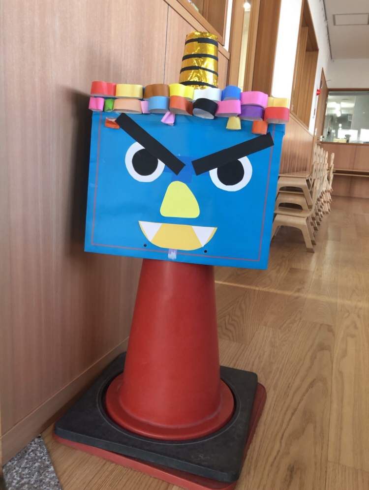 保育生活 おにはそと!ふくはうち! 2021年2月4日 しおえふたばの豆まき会♪ お豆の代わりに カラーボール、紅白玉を使って おに退治! ☆ひよこ・うさぎぐみ☆ ☆りすぐみ☆ ☆ぺんぎんぐみ☆ ☆きりんぐみ☆ ☆ぞうぐみ☆ 子どもたちに「節分」を経験してほしい!と先生たちも試行錯誤、豆まきの準備を進めてきました☆☆おまけ☆豆まき会当日、玄関でみんなのことを待っていた愛嬌のある(!?)おにさん♪↓↓↓