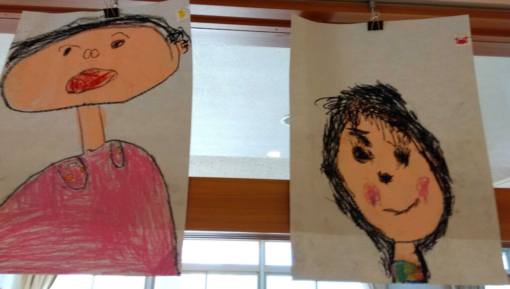保育生活 ~じぶんの 顔を描いたよ~ 2025年12月15日 自分の顔って どんなかな~? 3歳児クラス:ぺんぎん組 4歳児クラス:きりん組 5歳児クラス:ぞう組 個性を発揮して さまざまな表現で 笑顔いっぱい かわいいお顔が描けました~♪
