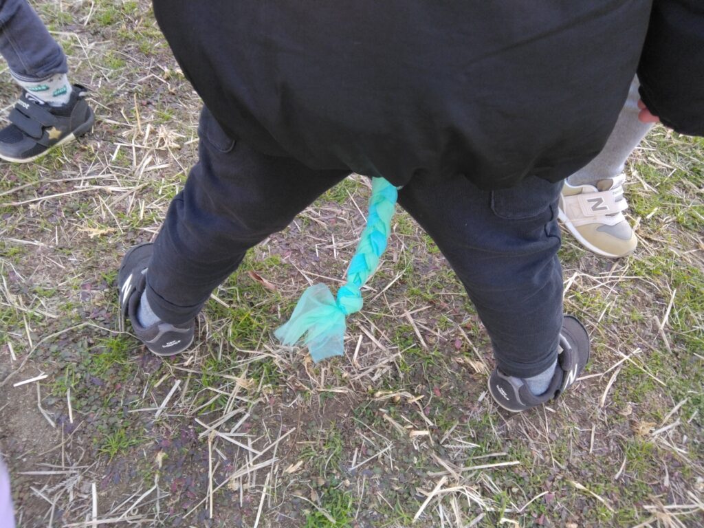 チャッピー 1月のチャッピー保育園 2026年2月3日 寒い日が続いているのでみんなで氷作りに挑戦しました。 毎日、凍っているか確認していますよ(⌒∇⌒) 公園では元気に遊んでいます。 落ち葉集めを楽しんでいます。たくさん集めて、落ち葉の雨を降らせています。 しっぽを付けました!!! しっぽ取り、みんな全力で逃げています。 チャッピー保育園の子どもたちは、寒い日でも元気に過ごしています。