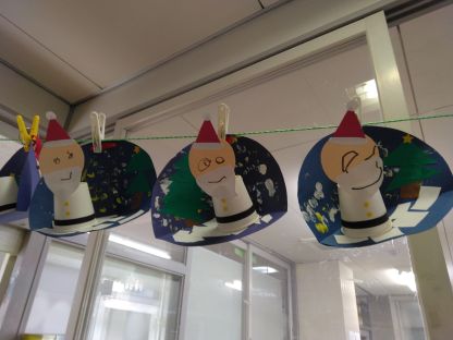 ↑ 2歳児クラス・サンタクロースを作りました。顔を描いたり、のりを使って貼り付けも楽しみました。